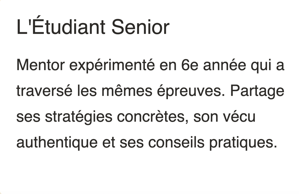 Alice étudiante en 6éme année de médecine vous accompagnera et vous transmettra son expérience afin de vous guider vers l’essentiel.