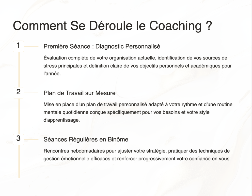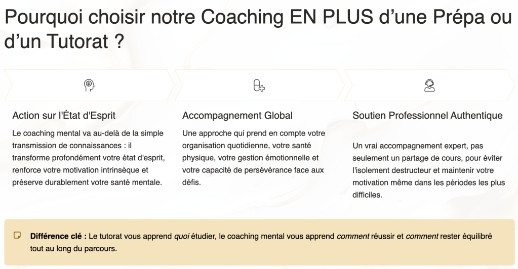 Si vous êtes sur cette page, c’est que vous êtes d’attaque à affronter la sacrosainte première année d’études de santé. Au cours d’une préparation mentale optimale nos coachs certifiés vous invitent à aborder plus sereinement cette première année et se concentrent sur :